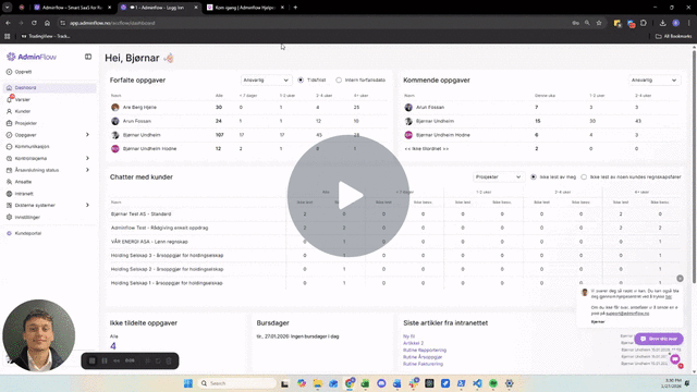 Intranett i Adminflow gir regnskapsbyråer og selskaper ett felles sted for interne rutiner, retningslinjer og informasjon. Alt samles strukturert og tilgjengelig for riktige brukere.